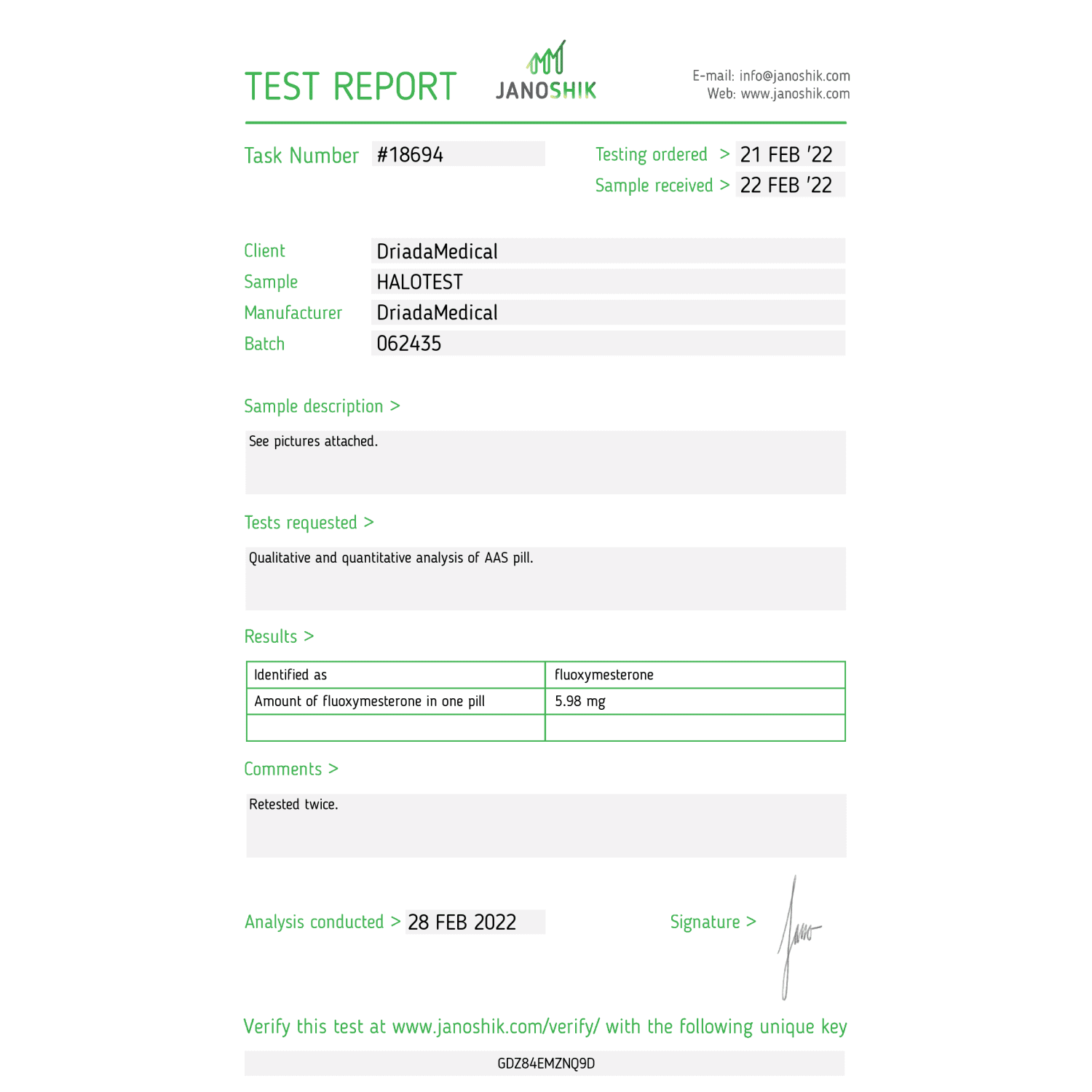 Halos (Fluoxymesterone) Driada Medical 5 mg