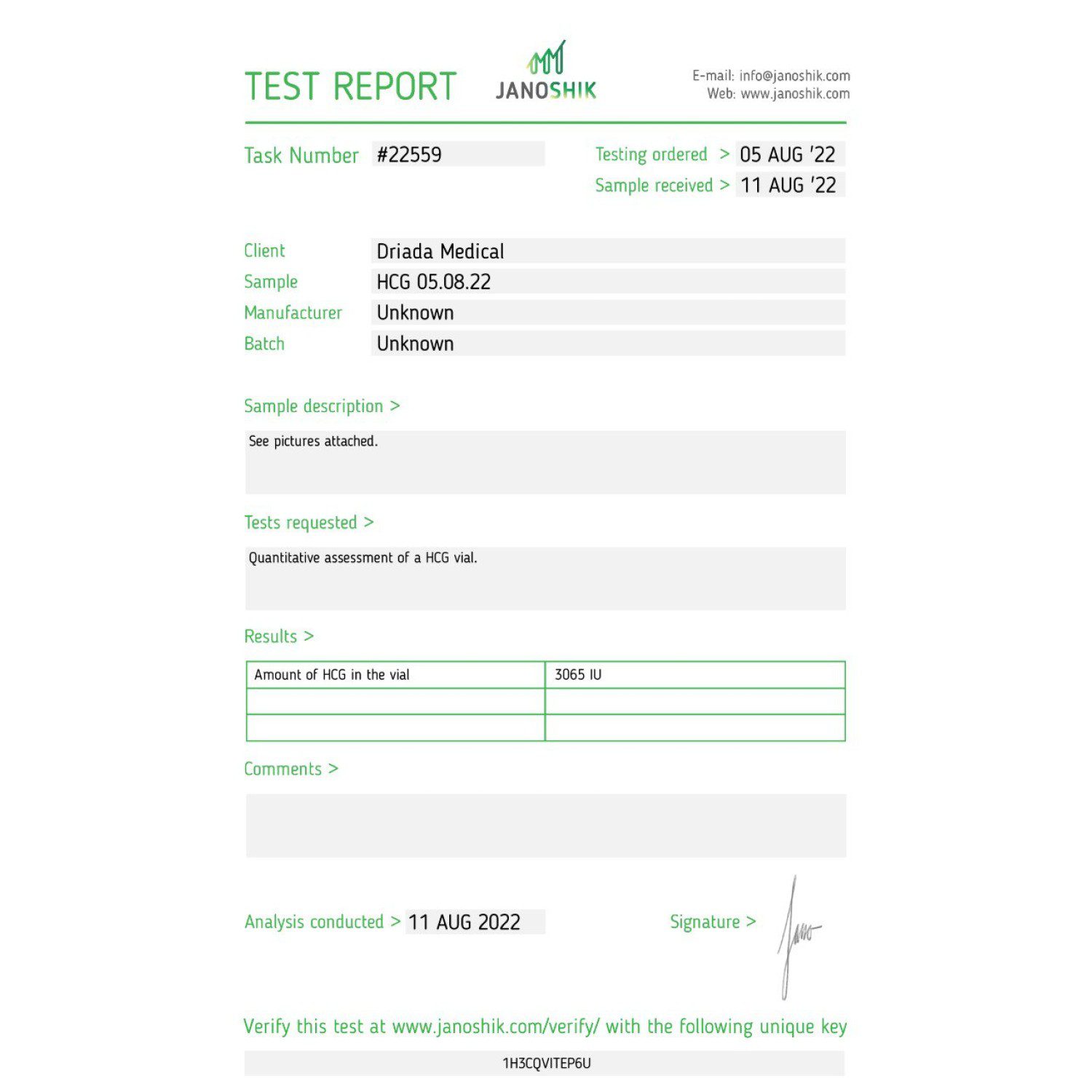 HCG 2000iu (Human Chorionic Gonadotropin) Driada Medical