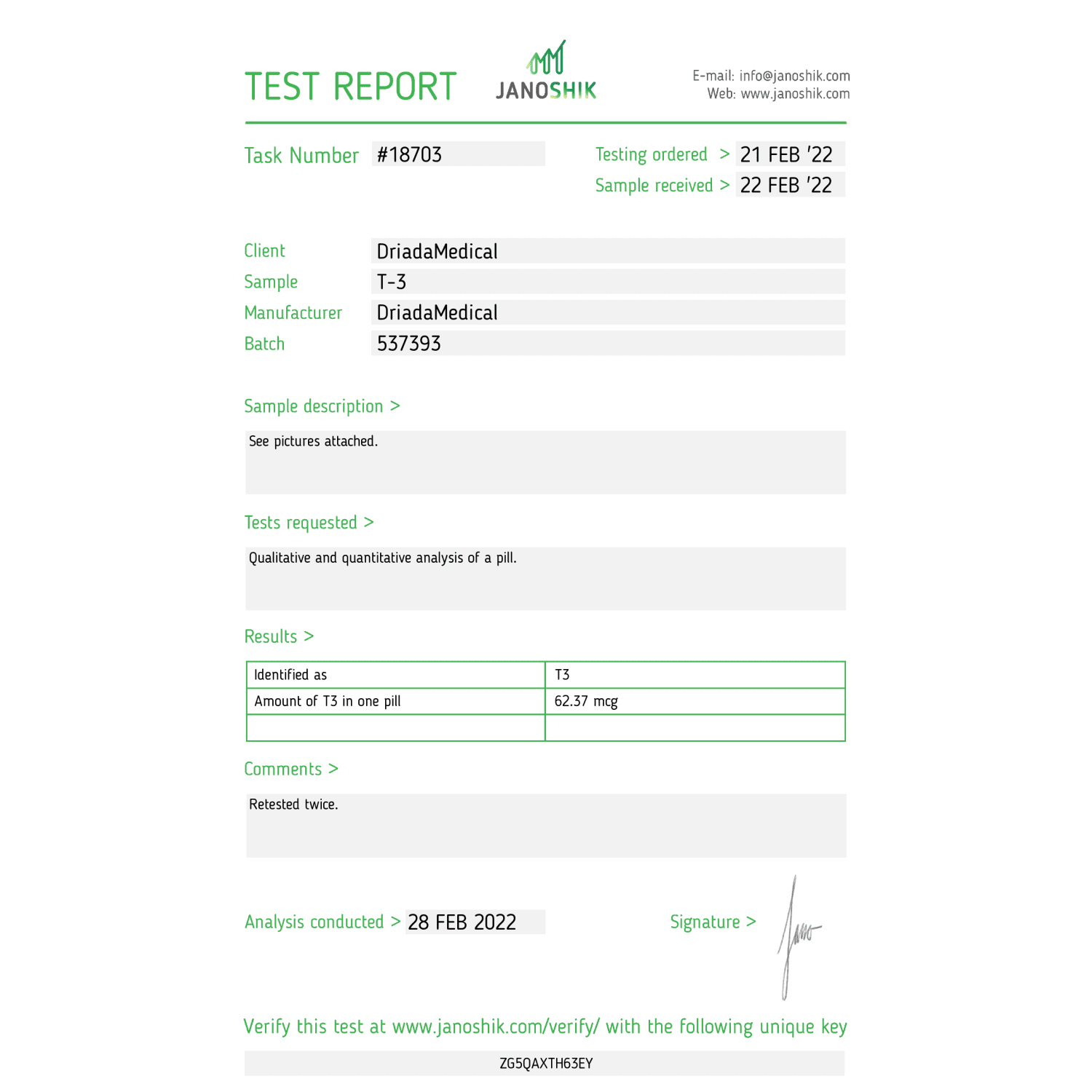Liothymed (T3 – Triiodothyronine) Driada Medical 25 mcg