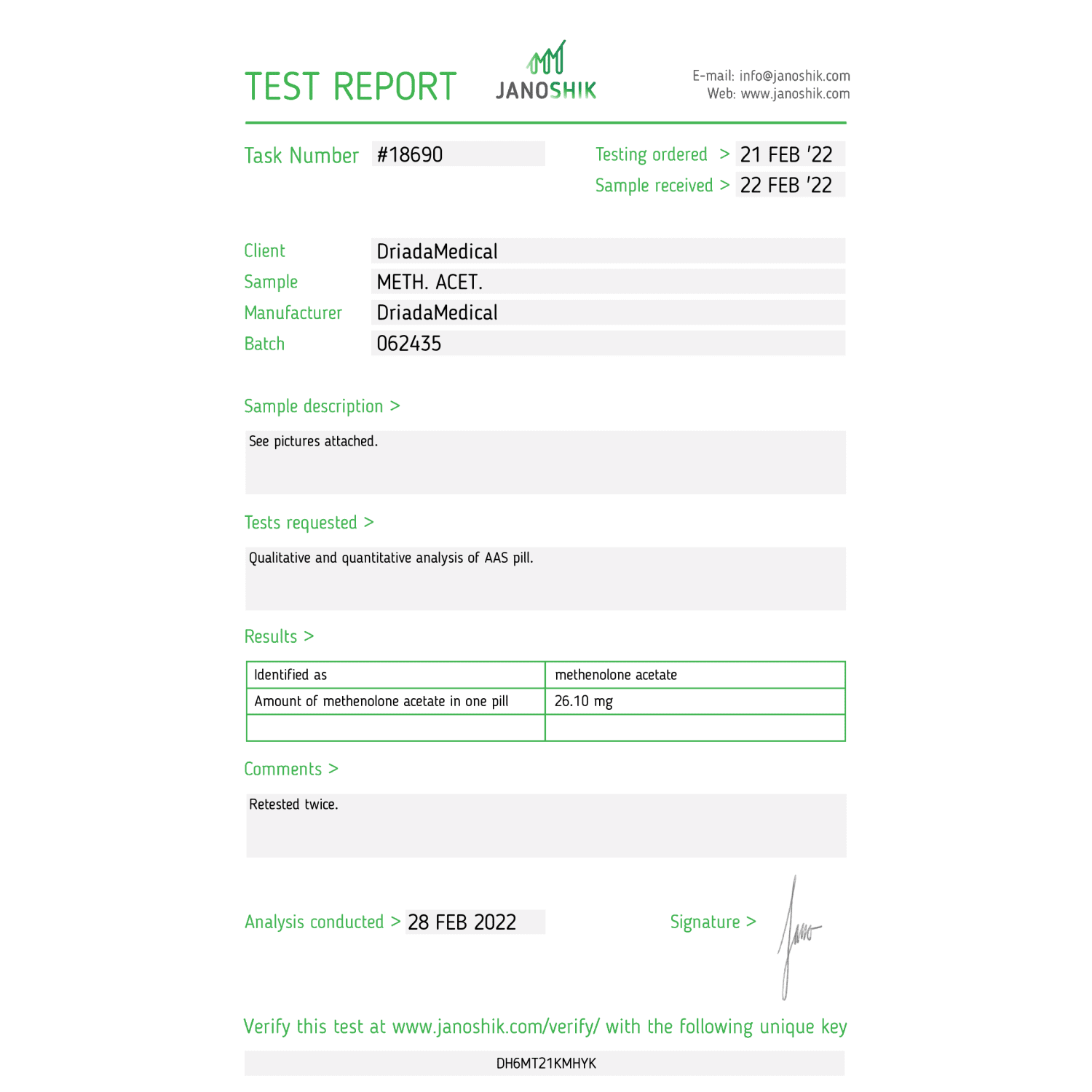 Methacetos (Methenolone acetate) Driada Medical 25 mg