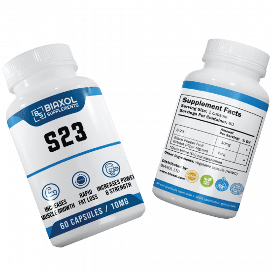 S23 Biaxol Supplements is an oral, nonsteroidal Selective Androgen Receptor Modulator (SARM) that has been shown to increase lean muscle and bone tissue by being tissue-selective (unlike traditional steroids). S23 Biaxol Supplements will reduce water retention, creating muscle tightening and a grittier, ripped, and more aesthetic appearance.