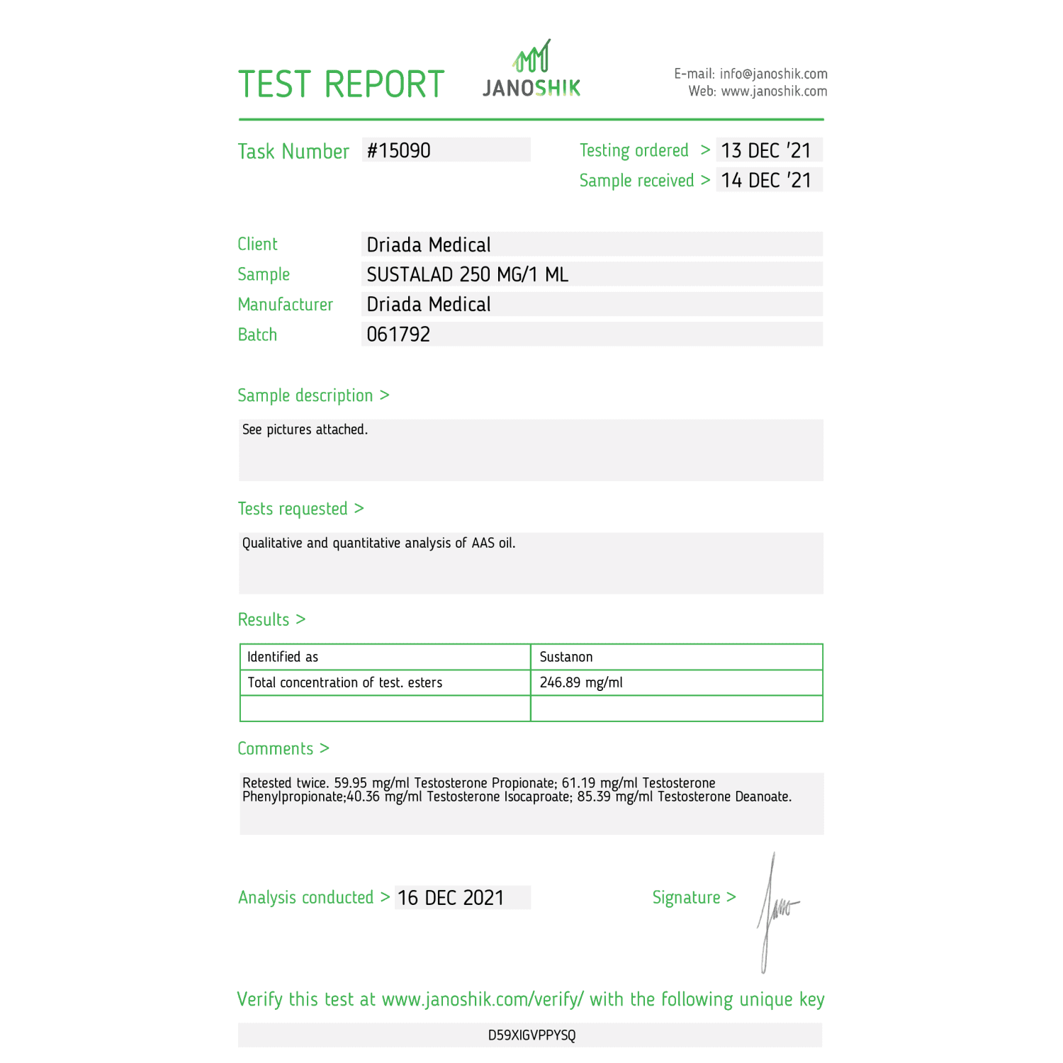 Be the first to review “Sustalad (Sustanon) Driada Medical 250 mg/ml 10ml Vials”
